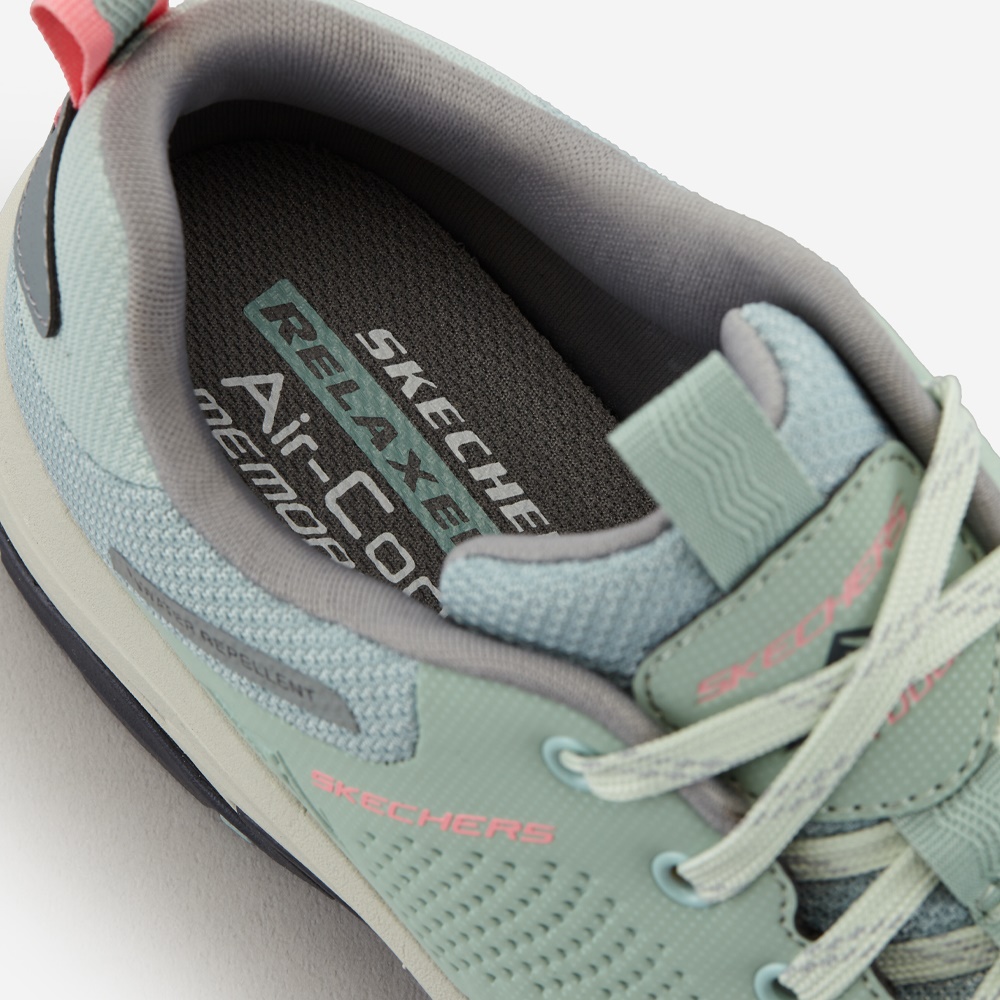 방수가 된다길래 구매했습니다. 큰 비는 아직 경험하지 못했지만 보슬비와 작은 웅덩이는 너끈했습니다. 벌써 10켤레 정도 구입했는데 스케쳐스는 실망시킨 적이 없는 것 같아요. 여름 신발도 기대하겠습니다.