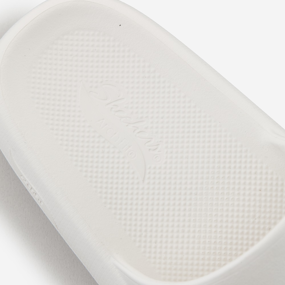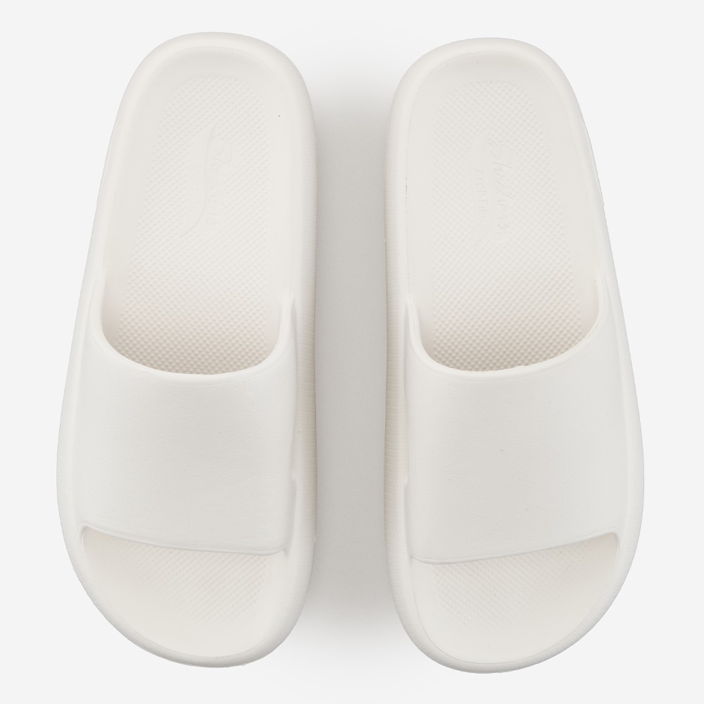 쌩화이트는 부담스러워서 이걸로 했는데 이건 쿨계열 레몬색이네요 남자꺼는 웜한 아이보리던데 그건 사이즈가 없어서 아쉽 첨에 신어봣을 땐 글케 아치 받쳐주는지 모르겠더니 신다보니 푹신하기도 하고 아치도 없는 것 보단 훨 편한 것 같아요 사이즈는 정사이즈인듯해요 저는 발볼 넓고 발등 높은 250인데크지도 작지도 않고 딱맞아요 소리 안나서 좋다는 후기도 있던데 저는 걸을때 소리는 꽤 나더라구요 뒷꿈치에 부딪히는 소리랑 바닥 재질에 따라 찍찍 소리 여튼 인터넷에 아치 슬리퍼 쳐서 암거나 사도 3만원은 하는데 스케쳐스꺼거 사는게 나을 거 같아서 구매햇는데 갠찮은듯해요