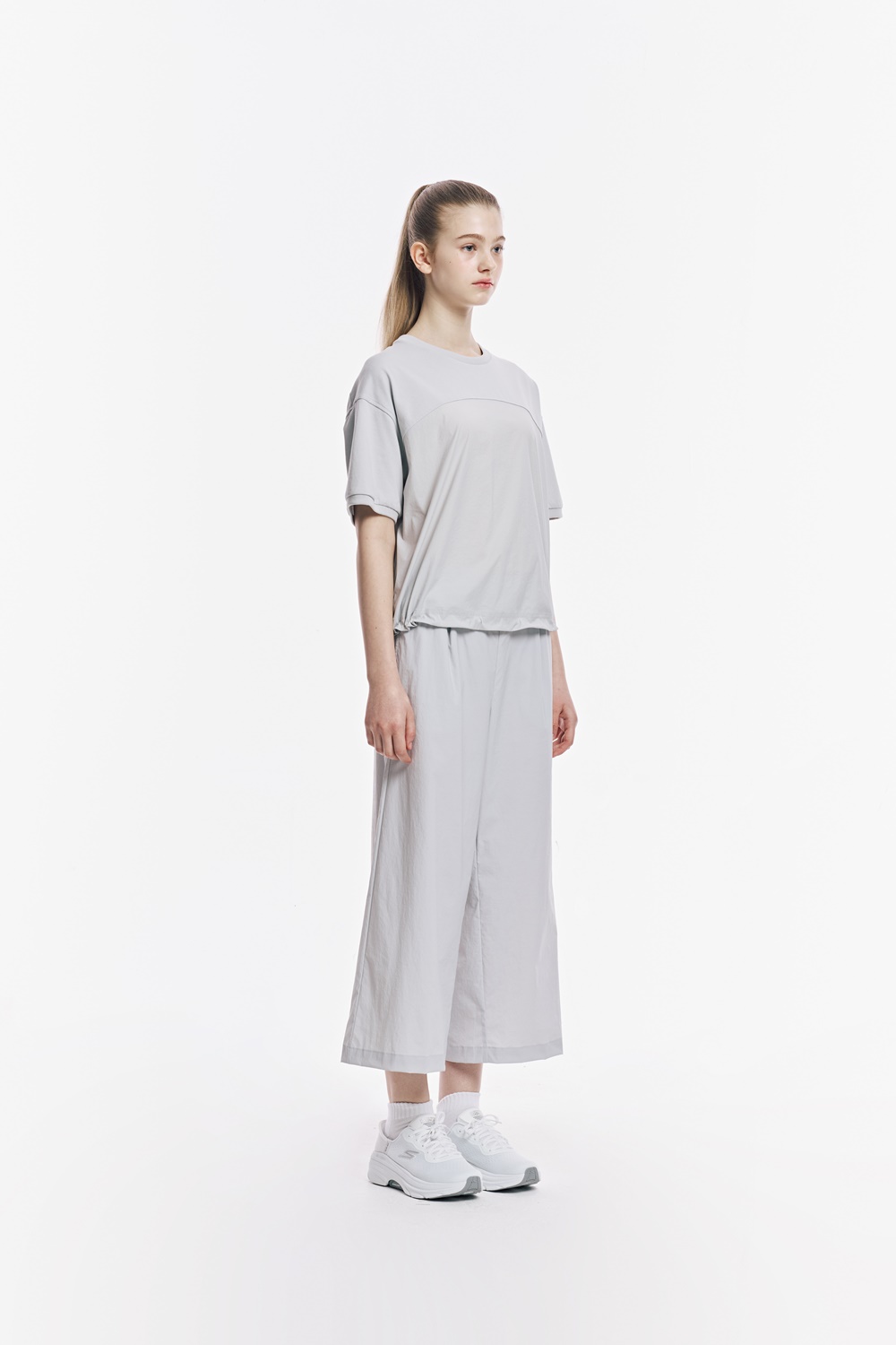 [스케쳐스 어패럴] 우븐+니트 믹스 하이브리드 티셔츠