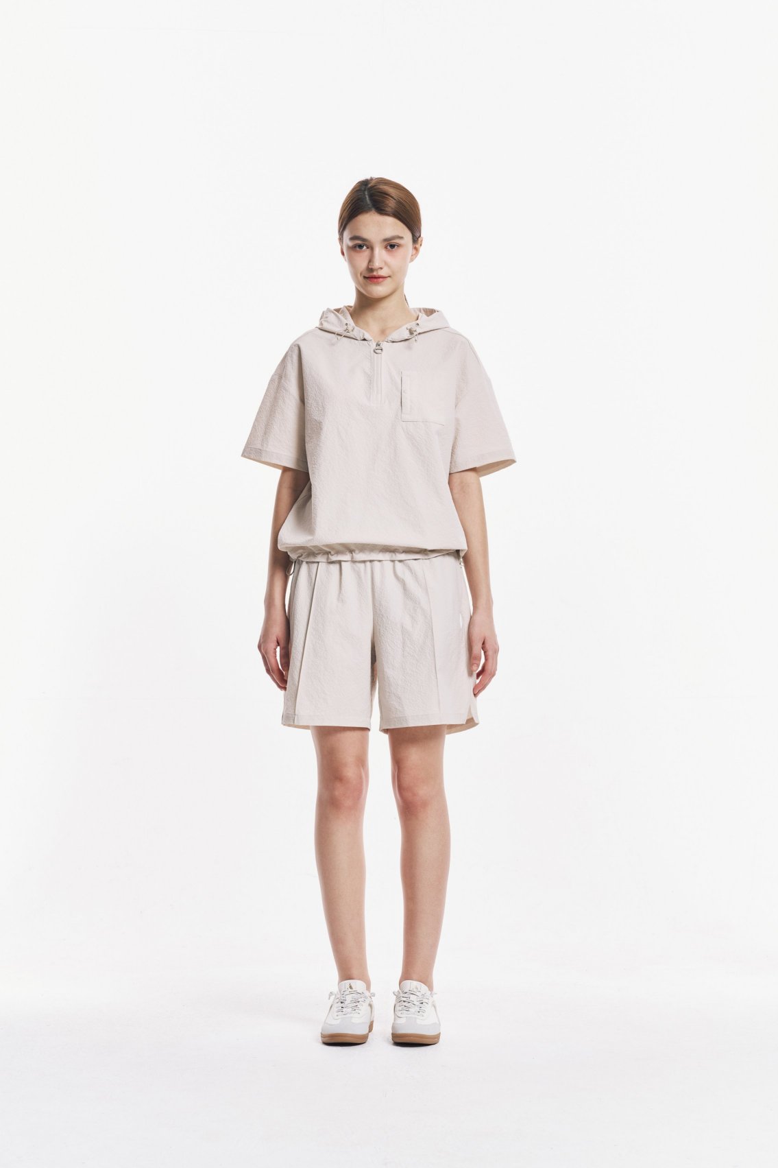 여성 시티 시어서커 반팔 후드 티셔츠사이즈 정보