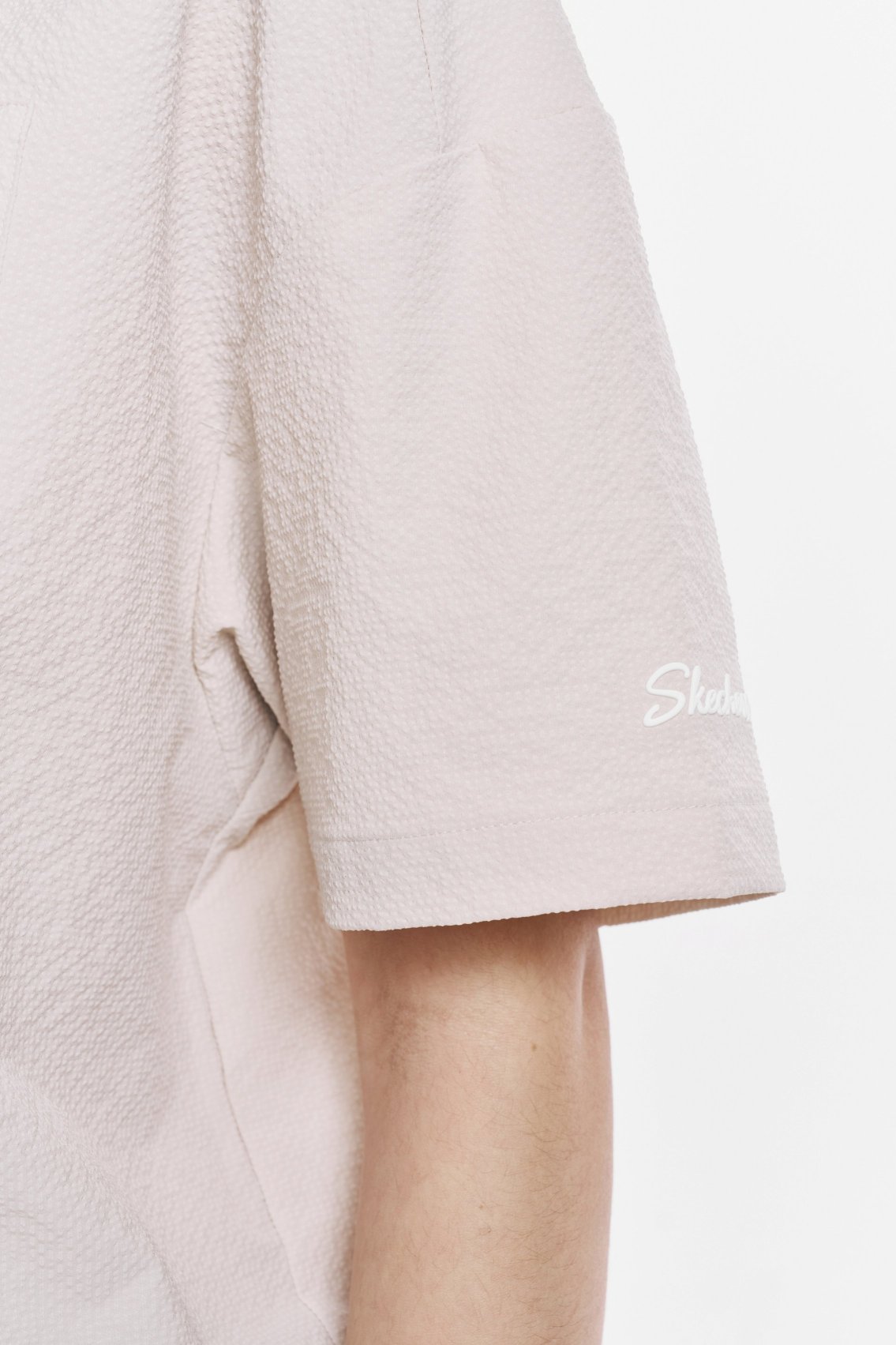 [스케쳐스 어패럴] 여성 시티 시어서커 반팔 후드 티셔츠