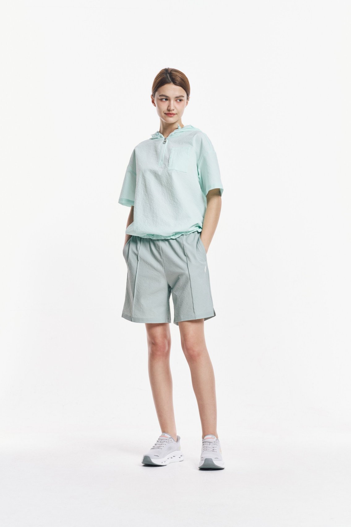 여성 시티 시어서커 반팔 후드 티셔츠사이즈 정보