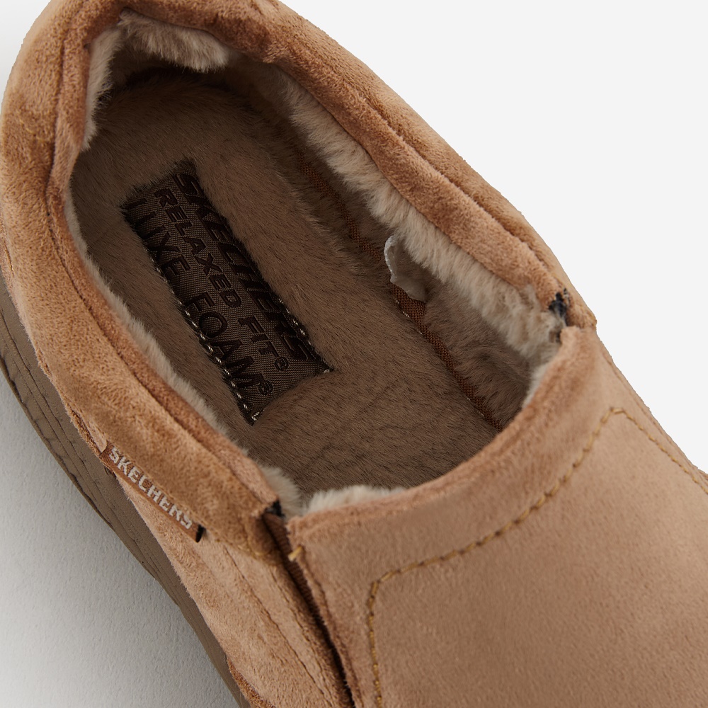 작년에 아마존에서 구매한 블랙색상에 이어 이번에 탄 색상 으로 구매했네요, 비교해보면 모양이 슬림하게 나왔고요, 안에 퍼 도 풍성해 따뜻함이 더 하네요. 블랙모델 은 메모리폼 이번건 럭스폼 이 라고 나오네요. 럭스폼이 쿠셔닝이 나아보이네요. 릴렉스핏 으로 발이 편안합니다. 정사이즈 잘맞고 , 만족 합니다.
