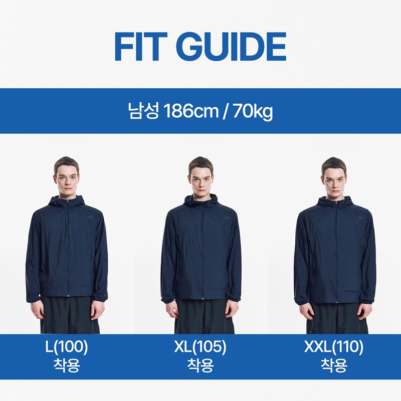 남성 액티브 패커블 경량 자켓사이즈 정보