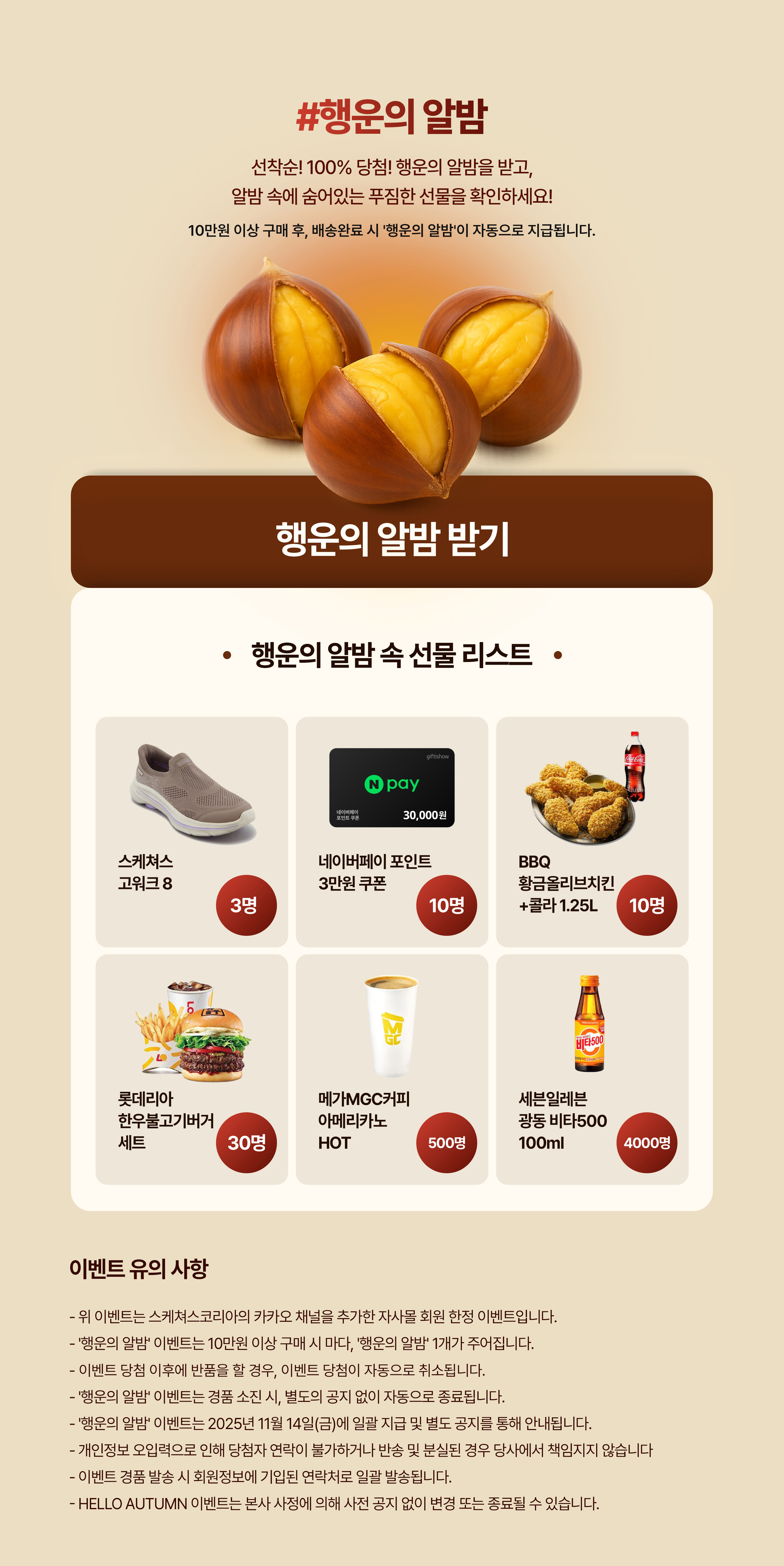 "행운의 알밤 이벤트"의 경품은 2025년 11월 14일(금)에